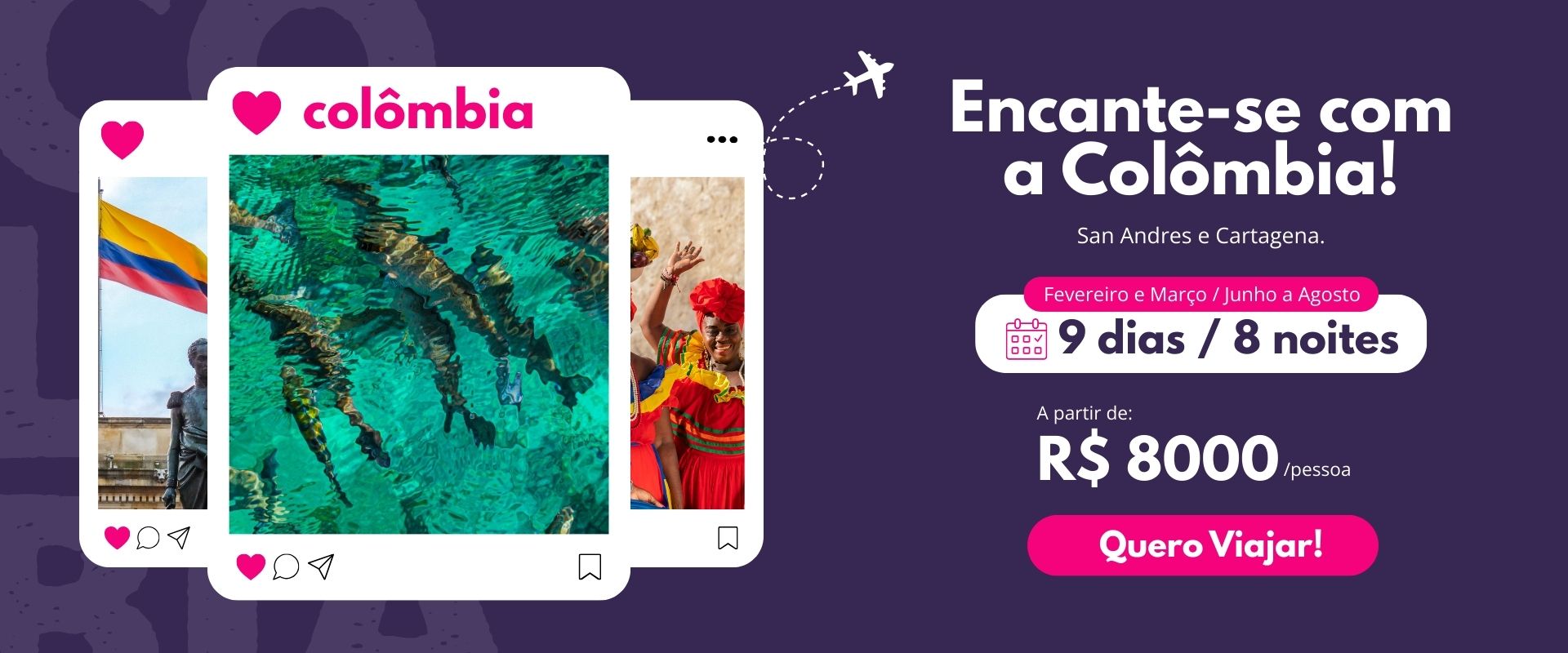 Organizamos seus voos, hospedagem e o que fazer no destino. Te oferecemos tudo que irá precisar e durante a sua viagem, nós te acompanhamos pelo WhatsApp com todo suporte necessário. Além das nossas dicas valiosas, te damos a segurança necessária para você conhecer o seu destino e te livramos de erros comuns ao viajar.