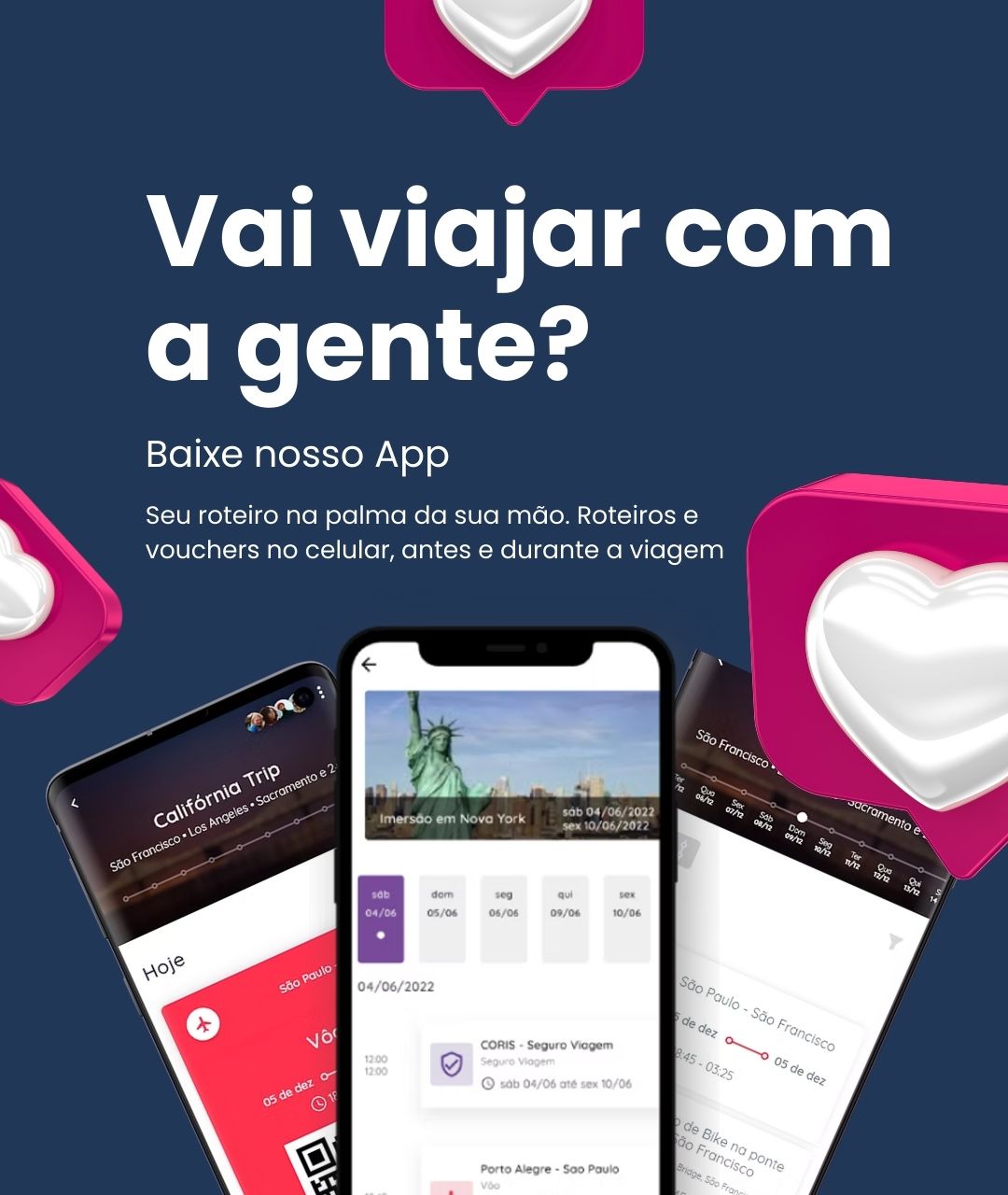 Aqui você conta com toda nossa experiência para organizar o seu roteiro de viagem e tudo isso fica disponível pra você no nosso aplicativo.